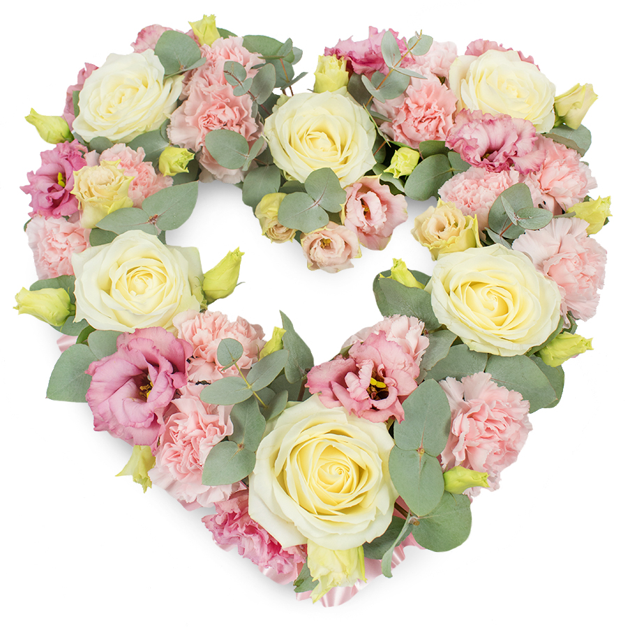 Honor cherished memories with our beautifully crafted tribute bouquet. This arrangement features luminous white roses, soft pink carnations, and graceful pink lisianthus, delicately accented by eucalyptus leaves. Each flower is meticulously hand-picked to guarantee supreme freshness and longevity.